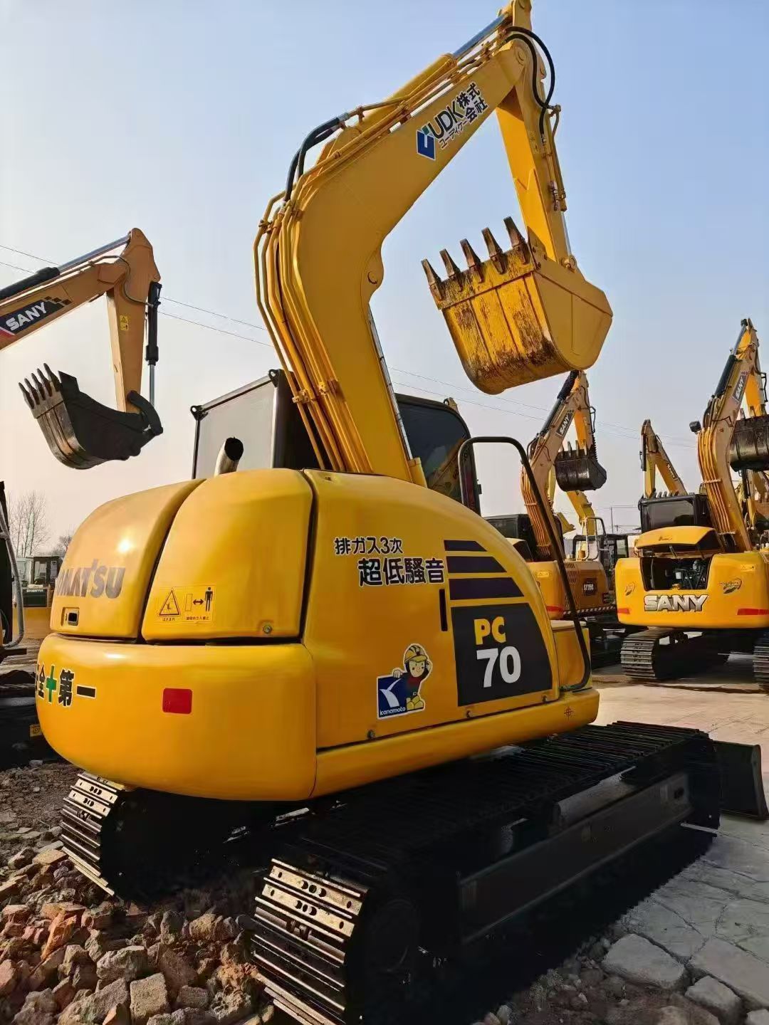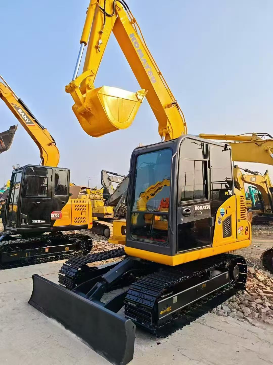 The PC70’s compact structure and short tail swing allow easy operation in tight spaces — ideal for urban construction, landscaping, and small excavation projects. Despite its size, it delivers impressive digging force and lifting performance.